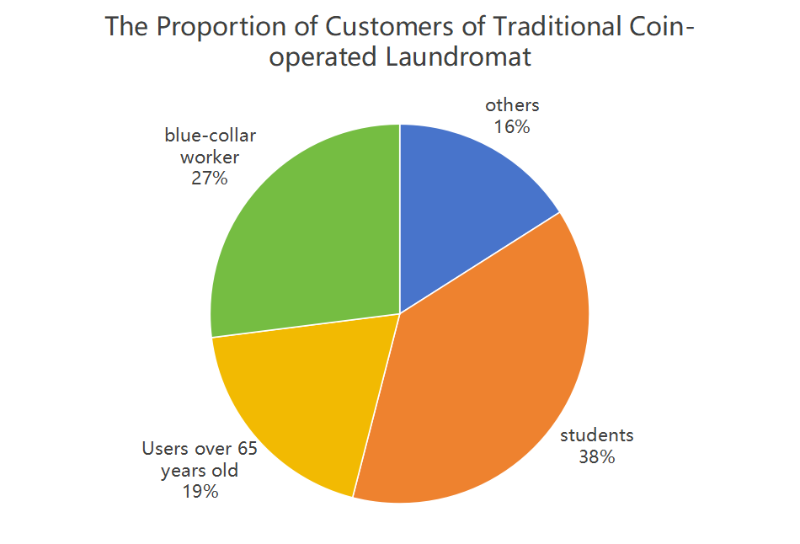Tradisjonell myntoperert vaskeri tørr konto s for 42 prosent av det globale selvbetjeningsmarkedet, med studenter som står for 38 prosent (ifølge American Laundry Association), arbeidere (27 prosent) og eldre brukere (19 prosent over 65).
